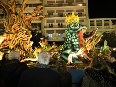 Τα φωταγωγημένα άρματα σε συνδυασμό με τον καρναβαλικό διάκοσμο και φωτισμό της πόλης έδωσαν μια εντυπωσιακή φαντασμαγορική εικόνα στο κέντρο της πόλης και στην πλατεία Γεωργίου Α΄ και παρέμειναν μπροστά από το Δημοτικό Θέατρο «Απόλλων» για μεγάλο χρονικό διάστημα. Εκεί ενθουσιασμένος ο κόσμος-μικροί και μεγάλοι-τα περιεργαζόταν, τα θαύμαζε και φωτογραφιζόταν μαζί τους.