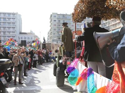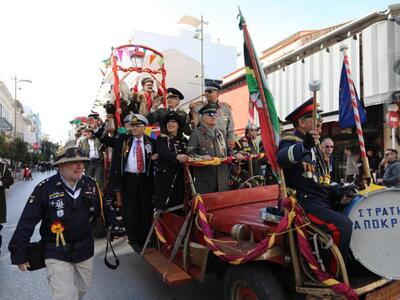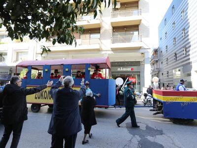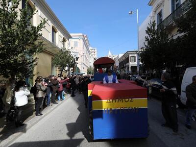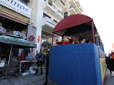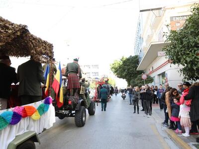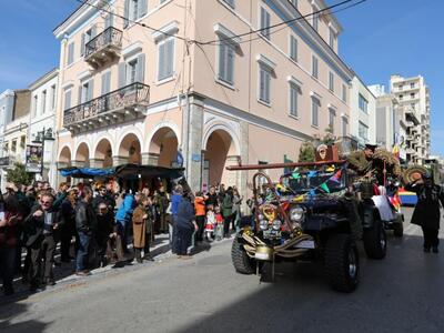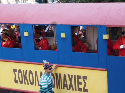 Ο αναλλοίωτος και εξαιρετικά ανθεκτικός στο πέρασμα του χρόνου σοκολατοπόλεμος με τις γνωστές συναρπαστικές ρίψεις σοκολατών από τους συλλόγους «Σοκολατορίχτες», «Σοκολατομαχίες», «Σοκολατοδρομίες», Σοκολατομανίες» και «Σοκολατοπαίχτες» έδωσε χρώμα στο κέντρο της Πάτρας με τους σοκολατορίχτες από το όχημά τους να προσφέρουν ευθυμία και να προγλυκαίνουν τον κόσμο ενόψει της ποδαράτης παρέλασης.