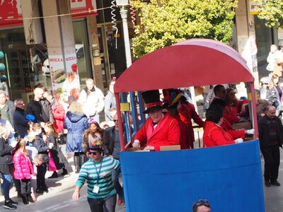 Ακολούθησε τη διαδρομή: Αγίου Ανδρέου - Αράτου - Μαιζώνος –Πλατεία Γεωργίου Α΄ (κάτω μέρος)-Μαιζώνος- Γούναρη -Κορίνθου-Πλατεία Γεωργίου Α΄(πάνω μέρος)–Κορίνθου-Κολοκοτρώνη-Μαιζώνος-Πλατεία Γεωργίου Α΄ (κάτω μέρος)-Μαιζώνος-Πατρέως- Όθωνος Αμαλίας μέχρι την Γούναρη. Τα οχήματα των σοκολατοριχτών συνοδεύονταν από τους Στρατηγούς και το τζιπ τους.