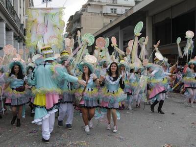 Στη μεγάλη παρέλαση της Κυριακής θα παρελάσουν επίσης άρματα του σοκολατοπόλεμου, που θα συνεχίσουν το αναλλοίωτο στο πέρασμα του χρόνου παραδοσιακό έθιμο γλυκαίνοντας τους θεατές σε πεζοδρόμια, μπαλκόνια της Κορίνθου και στην πλατεία Γεωργίου Α΄.