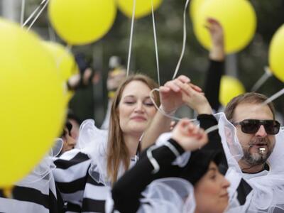 Όλοι όσοι συμμετείχαν στην παρέλαση δεν σταματούσαν ούτε στιγμή να χορεύουν και να τραγουδούν, παρασύροντας στους ρυθμούς τους θεατές της παρέλασης, που περίμεναν στα πεζοδρόμια για να δουν από κοντά τις πολύχρωμες και ευφάνταστες στολές των καρναβαλιστών.
