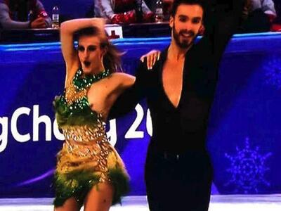 Παρά την αποκάλυψη του ενός στήθους της, η Γκαμπιέλα Παπαδάκις συνέχισε να χορεύει με τον παρτενέρ της Γκιγιόμ Σιζερόν στον πάγο, κατά τη διάρκεια της παρουσίασης του προγράμματος τους στους Χειμερινούς Ολυμπιακούς Αγώνες της Πιοντσάν στη Νότια Κορέα.