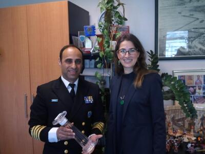 Ο Κεντρικός Λιμενάρχης, Πλοίαρχος Λ. Δημήτρης Κυριακουλόπουλος Δημήτριος, και ο Υπολιμενάρχης Αντιπλοίαρχος Λ.Σ Κωνσταντίνος Κοριζής, υποδέχθηκαν την Γενική Πρόξενο, με την οποία συζήτησαν για θέματα αμοιβαίου ενδιαφέροντος.