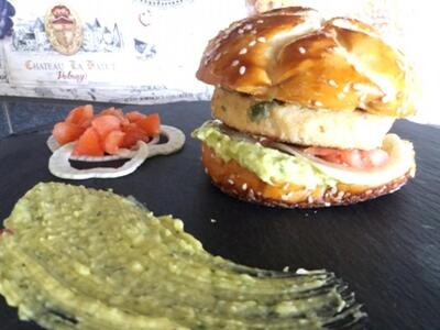 BURGER ΜΕ ΣΑΛΤΣΑ ΓΚΟΥΑΚΑΜΟΛΕ,ΤΑΡΑΜΑ & ΦΙΝΟΚΙΟ