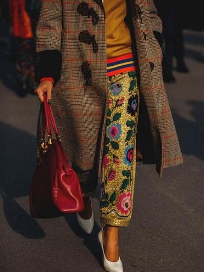 Όλα τα κεντήματα με τους τίγρεις, τις πέρλες και τα γράμματα, τα τι σερτ με τα λογότυπα, τις πολύχρωμες ρίγες, τα τσαντάκια μέσης και τις πλισέ φούστες του οίκου Gucci τις παρακολουθούμε να κυκλοφορούν συνδυασμένες ευφάνταστα με λουλουδένια εμπριμέ και καρώ. Ταυτόχρονα κάνουν θραύση τα logos του οίκου Fendi, τα χοντρά teddy coats, τα λεγόμενα ugly sneakers, τα πολλά λεοπάρ και τα περίεργα παπούτσια. (Ο,τι δηλαδή δεν βλέπουμε να κυκλοφορεί στα μέρη μας) Kαμία διακριτικότητα αλλά … μας αρέσει!