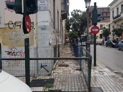 Κιγκλιδώματα και κορδέλες σήμανσης βρίσκονται στο σημείο, έχοντας επι της ουσίας καταργήσει στο μεγαλύτερο πλάτος του, ένα από τα πλέον λειτουργικά πεζοδρόμια στο κέντρο της αχαϊκής πρωτεύουσας.