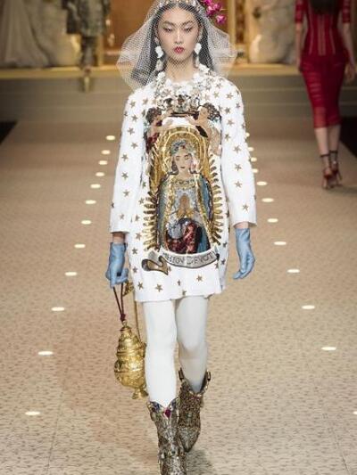 «Παίζουμε με την παράδοση της θρησκείας μας, επειδή η θρησκεία μας αποτελεί και μόδα» δήλωσαν οι ιταλοί Dolce e Gabbana για την επίδειξή τους στο Μιλάνο με κυρίαρχη έμπνευση τον Καθολικισμό. Το βεστιάριο των ιερέων στο Βατικανό, ο ίδιος ο Πάπας, ο διάκοσμος και τα τελετουργικά σκεύη των εκκλησιών καθώς και οι θρησκευτικοί αναγεννησιακοί πίνακες «δάνεισαν» στοιχεία τους στα άκρως υπερβολικά ρούχα και αξεσουάρ για το χειμώνα 2018-2019. «Η πίστη είναι μέσα στη ζωή μας. Προσευχόμαστε καθημερινά να γίνει η μόδα πιο όμορφη» ανέφεραν στη Vogue.