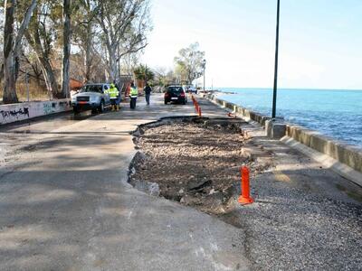 Αν και τέτοιες εργασίες είναι στην αρμοδιότητα της Κτηματικής υπηρεσίας άνθρωποι του Δήμου ξεκίνησαν να "μπαλώνουν" τις λακκούβες και μετά το Ρίο θα συνεχίσουν και με άλλες περιοχές της ακτογραμμής.