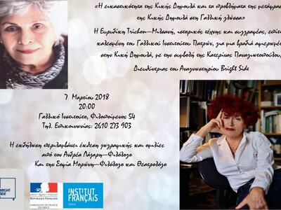 Περισσότερες πληροφορίες : Γαλλικό Ινστιτούτο Πατρών, τηλ. : 2610 273903.