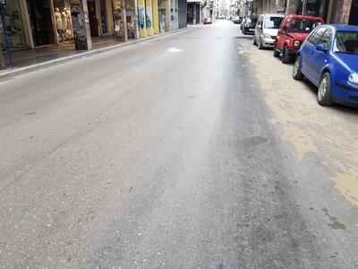 Ολισθηρός είναι ο δρόμος και εξαιτίας των κάδων που κάηκαν και έλιωσαν στο οδόστρωμα, στη συμβολή της Κορίνθου με την Αγ. Νικολάου.