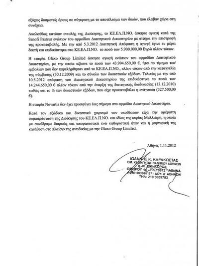 Ιδιαίτερο ενδιαφέρον και αποκαλυπτικό του τρόπου που λειτούργησε η κ. Μαλλιώρη είναι το ΕΝΗΜΕΡΩΤΙΚΟ ΣΗΜΕΙΩΜΑ που συνέταξε σε ανύποπτο χρόνο (Νοέμβριος2012) ο καθηγητής Νομικής κ. Καρακώστας που είχε αναλάβει την εκπροσώπηση του ΚΕΕΛΠΝΟ έναντι της Novartis.