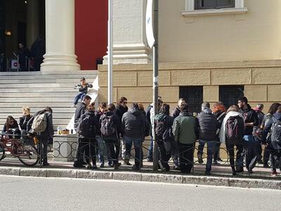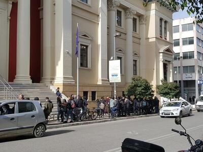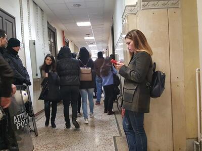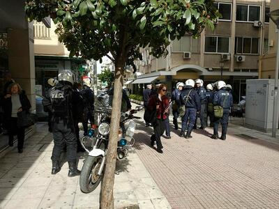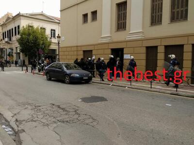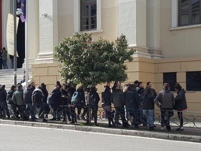 Τα δικαστήρια βρίσκονται υπό αστυνομικό κλοιό με ισχυρές δυνάμεις να επιτηρούν το χώρο. Έξω από το δικαστικό μέγαρο έχει αναρτηθεί πανό συμπαράστασης ενώ έχει συγκεντρωθει και μικρή - για την ώρα - ομάδα ατόμων.