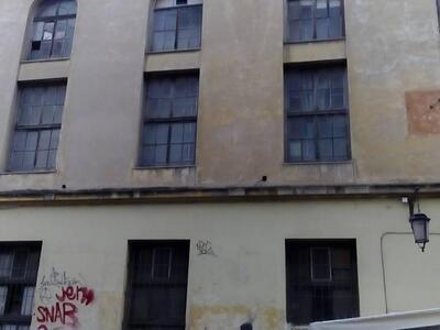 "τα παράθυρα του τελευταίου ορόφου και οχι μονο χάσκουν σπασμένα... διάλυμενα και ορθανοιχτα... οι τοιχους γεματοι συνθηματα... τα υπάρχονται τζάμια ειναι βρωμικα και αθλια ...το προαύλιο σε παναθλια εικόνα και οι δύο πανύψηλοι κορμοί "χαζεύουν "από εκεί ψηλά και θυμούνται μέρες χαράς και δόξας"...