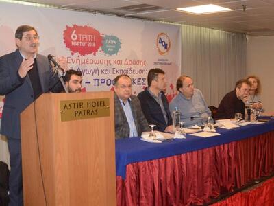 Ο Δήμαρχος Πατρέων, Κώστας Πελετίδης, παραβρέθηκε σήμερα, μετά από πρόσκληση του Διοικητικού Συμβουλίου της Διδασκαλικής Ομοσπονδίας Ελλάδας, στην επιστημονική ημερίδα που διοργάνωσε η Δ.Ο.Ε. στην Πάτρα, σε συνεργασία με τα Παιδαγωγικά Τμήματα του Πανεπιστημίου Πατρών και τον Σύλλογο Εκπαιδευτικών Π.Ε. Πάτρας, με θέμα: «Προσχολική Αγωγή και Εκπαίδευση – Εξελίξεις και Προοπτικές».Στον χαιρετισμό του, ο Δήμαρχος Πατρέων τόνισε: