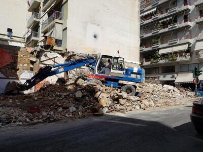Το κτίριο είχε προβλήματα στατικότητας. Στο πρόσφατο παρελθόν είχαν καταρρεύσει σοβάδες από την πρόσοψη, του παλιού μεζεδοπωλείου "Το Κονάκι". Την Τρίτη ξεκίνησε η κατεδάφισή του. Ο εργολάβος έπιασε δουλειά και τα φορτηγά απομάκρυναν τα μπάζα από το σημείο.