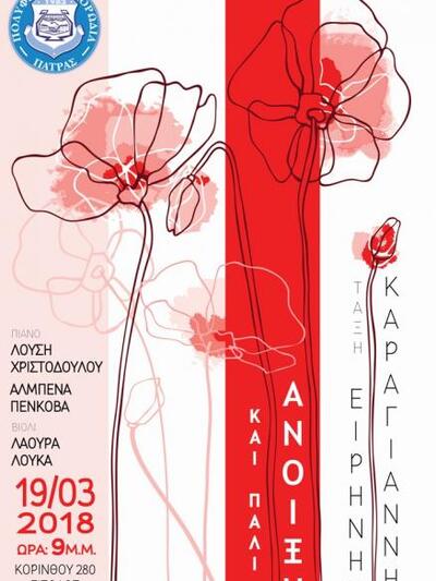 Το Ωδείο της Πολυφωνικής παρουσιάζει τη μουσική εκδήλωση με τίτλο «...και πάλι Άνοιξη» των σπουδαστών Μονωδίας της τάξεως της διάσημης μέτζο-σοπράνο και καθηγήτριας του Ωδείου, Ειρήνης Καράγιαννη. Η συναυλία θα λάβει χώρα την Δευτέρα 19 Μαρτίου υπό την διεύθυνση του Γιώργου Μπουρδόπουλου και την Διοικητική Διεύθυνση της Έφης Καββαδία- Ζέρβα.