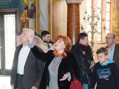 Ακολούθησε ξενάγηση στον Ιερό Ναό του Αγίου Ανδρέου, όπου οι επισκέπτες εντυπωσιάστηκαν από το μέγεθος, την επιβλητικότητα και την ιστορία του εμβληματικού ναού της ορθοδοξίας και στη συνέχεια επόμενος σταθμός ήταν το Νότιο Πάρκο. Οι προσκεκλημένοι είδαν πως μέσω των ενεργειών της Δημοτικής Αρχής σε τόσο μεγάλη έκταση μεταμορφώθηκε μέσω δεντροφυτεύσεων και πολλών έργων-παρεμβάσεων από εκτεταμένο σκουπιδότοπο σε πηγή ζωής, χαράς και αναψυχής δίπλα στη θάλασσα, έναν τόπο που οι Πατρινοί έβαλαν στην καθημερινή βόλτα τους. Ενημερώθηκαν επίσης για τις διεκδικήσεις του Δήμου Πατρέων για το θαλάσσιο μέτωπο, που δεν έχει αποδοθεί στην πόλη και την βούληση του Δήμου για μετατροπή του σε χώρο ήπιων δράσεων χωρίς εμπορευματικό χαρακτήρα.