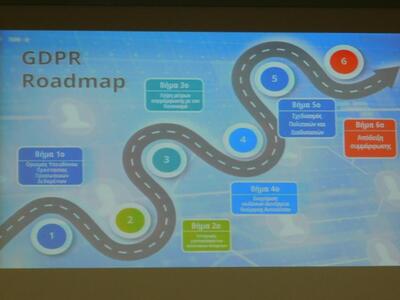 Οι ομιλητές αναφέρθηκαν αναλυτικά στον Γενικό Κανονισμό και τις Αλλαγές και ευκαιρίες για τον επιχειρηματικό κόσμο (κα Γεωργία Λειβαδάρου, Γεν Διευθύντρια του Διαβαλκανικού Κέντρου Επιχειρηματικής Ανάπτυξης) στο Πλάνο Συμμόρφωσης για τις μικρομεσαίες επιχειρήσεις και τα πρακτικά θέματα που ανακύπτουν (κα Δέσποινα Βεζακίδου Δικηγόρος, Νομικό Εμπειρογνώμονα για την προστασία δεδομένων), ενώ μία άλλη παράλληλη διάσταση δόθηκε από τον κο Στεργιόπουλο Γεώργιο, Διδάκτορα στο Οικονομικό Πανεπιστήμιο Αθηνών, ο οποίος ασχολήθηκε με την Αξιολόγηση των Κινδύνων και τα τεχνικά μέσα.