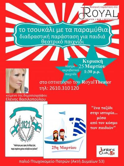 Όσο για τους μικρούς μας φίλους; Το τσουκάλι με τα παραμύθια, η θεατρική, διαδραστική παράσταση για παιδιά, από την Ελένη Βασιλοπούλου και την ομάδα του juniors club, κάνει ένα ταξίδι στην ιστορία μέσα από τα παιδιά.