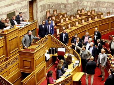 Νέο επεισόδιο, με πρωταγωνιστή τον βουλευτή της Χρυσής Αυγής, Γιάννη Λαγό, ανάγκασε τον προεδρεύοντα Σπ. Λυκούδη να διακόψει την συνεδρίαση της Ολομέλειας και να καλέσει την φρουρά εντός της αίθουσας. Ο βουλευτής της ΧΑ είπε από το βήμα μεταξύ άλλων "η εξωτερική σας πολιτική είναι για τα πανηγύρια, δύο Έλληνες είναι φυλακισμένοι" και έκανε λόγο για "προδότες".