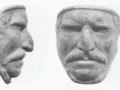 Προσωπείο του Κωνσταντίνου Μπότσαρη. Γύψινο αποτύπωμα πλασμένο επί του νεκρού το 1853.