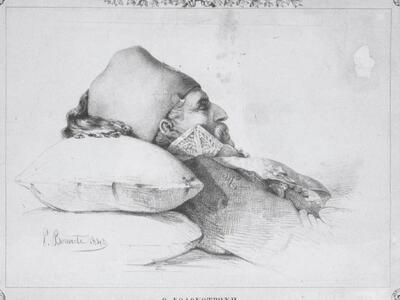 Ο νεκρός του Θεόδωρου Κολοκοτρώνη. Σκίτσο φιλοτεχνημένο εκ του φυσικού από τον καλλιτέχνη P.Bonirote, 1843.