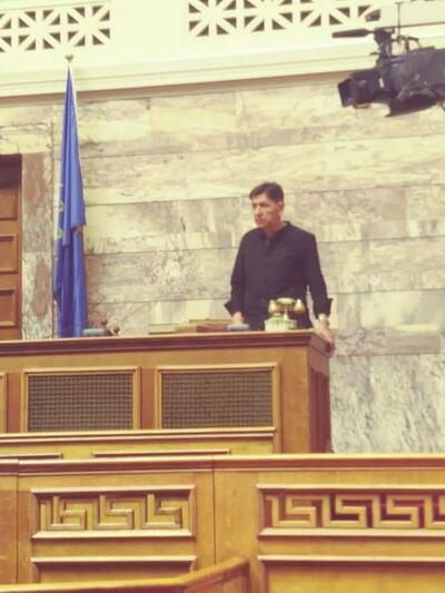 Αύριο λοιπόν, Τρίτη 27 Μαρτίου, ο ηθοποιός θα παρουσιάσει στη Βουλή το μονόλογο «Εκτός Ύλης ή Ο μονόλογος ενός καθ' ομολογία παραλόγου».