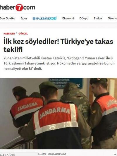 Στο ίδιο κλίμα η Haber7 με τον εμφατικό τίτλο: «Το είπαν για πρώτη φορά! Η προσφορά ανταλλαγής στην Τουρκία», αναφέρει τη θέση του κ. Κατσίκη, ως στέλεχος της κυβέρνησης ο οποίος συζήτησε την ανταλλαγή των Ελλήνων στρατιωτικών με τους Τούρκους πραξικοπηματίες ανοιχτά στην τηλεόραση