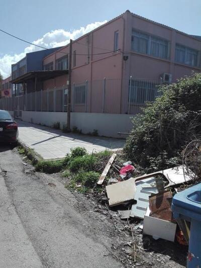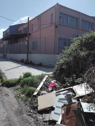 Τα σκουπίδια κοντεύουν να φθάσουν την είσοδο του σχολείου και οι καθηγητές που έχουν ενημερώσει τις αρμόδιες υπηρεσίες για τον καθαρισμό ακόμη... περιμένουν.