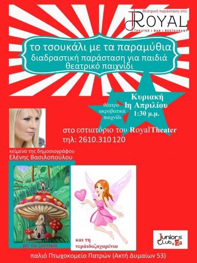 “Το τσουκάλι με τα παραμύθια”, Μια διαφορετική, θεατρική, διαδραστική παράσταση για παιδιά, με πολύ θέαμα, υπέροχα μηνύματα και θεατρικό παιχνίδι, σε κείμενο της Ελένης Βασιλοπούλου, έχουν την ευκαιρία να παρακολουθήσουν κάθε Κυριακή μεσημέρι όσοι βρεθούν στο εστιατόριο του Royal Theater.