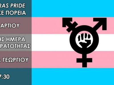 Το Patras Pride διοργανώνει όπως ανακοίνωσε, πορεία για την Διεθνή Ημέρα Τρανς Ορατότητας, το Σάββατο 31/03/2018 στην Πλατεία Γεωργίου, ώρα 17:30. «Αγωνιζόμαστε για τα δικαιώματά μας και διεκδικούμε την ορατότητα μας στον δημόσιο χώρο, ενάντια σε κάθε διάκριση και καταπίεση», αναφέρεται στο σχετικό κάλεσμα.