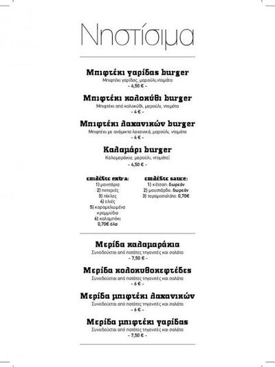 Στο μενού του συμπεριλαμβάνονται το Burger λαχανικών και το Burger κολοκύθι, για τους απαιτητικούς καλοφαγάδες. Ενώ για τους λάτρεις του ψαριού δίνονται οι εναλλακτικές για Burger γαρίδας και για Καλαμάρι Burger. Τελικά δεν είναι τόσο λίγες οι επιλογές σου (!)