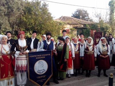 Τα μέλη του Πολιτιστικού συλλόγου Αλισσαίων «Πείρος» πήραν μέρος στην καθιερωμένη πομπή την Κυριακή των Βαίων 1η Απριλίου 2018 έως τον Κήπο των Ηρώων και εισέπραξαν το ζεστό χειροκρότημα του κόσμου και θετικά σχόλια για την παρουσία τους.