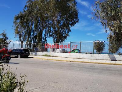 Παραπήγματα και σκηνές έχουν στηθεί μπροστά από το κολυμβητήριο και στα όρια του μαντρότοιχου.