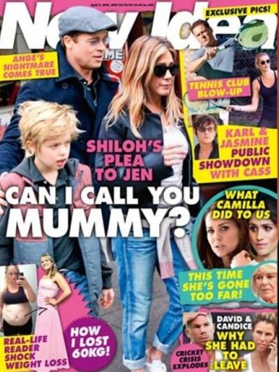 Σύμφωνα με πηγές του περιοδικού New Idea, η Σιλό έχει ρωτήσει τον μπαμπά της, εάν μπορεί να αποκαλεί την Άνιστον μαμά και η Αντζελίνα… άρχισε να "βγάζει καπνούς". Άλλωστε είναι στα δικαστήρια με τον πρώην σύζυγό της για την κηδεμονία των παιδιών τους.
