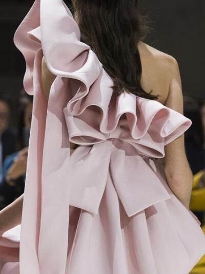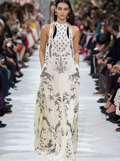 O διάσημος ιταλικός οίκος Valentino παρουσίασε κάποια από τα ωραιότερα φορέματα για το φετινό καλοκαίρι "παίζοντας" με κεντημένες διαφάνειες, τιράντες αθλητικού τύπου φορεμένες τη μια πάνω στην άλλη, τρισδιάστατα λουλούδια, μικρά πουά αλλά και βολάν και φιόγκους σε ρομαντικό ύφος. Ειδικά το ροζ μάξι με τα μονόπαντα βολάν είναι ένα από τα πιο πολυφωτογραφημένα διεθνώς.