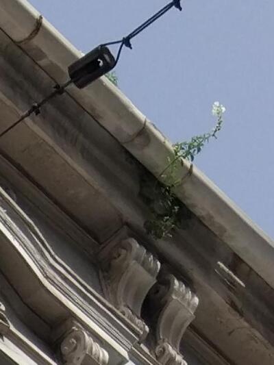 Η άνοιξη το στόλισε δεόντως, καθώς κάπου ψηλά στη μετόπη του, μέσα σε υδροροές και σε γύψινες διακοσμήσεις άνθισαν λουλούδια!