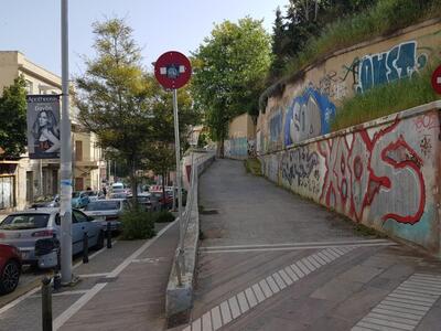 Οδός Εισοδίων. Ένας δρόμος υπερυψωμένος, δίπλα από την 25ης Μαρτίου -που οδηγεί στην πλατεία Αγ. Γεωργίου-λίγα μέτρα μακριά από την οδό Αγ. Νικολάου. Πρόκειται για το τμήμα του δρόμου το οποίο πριν από λίγα χρόνια ενισχύθηκε με εντυπωσιακούς τοίχους αντιστήριξης και κιγκλιδώματα, τα οποία είναι ορατά από την 25ης Μαρτίου. Τα graffiti στους τοίχους προσδίδουν και αυτά μια ξεχωριστή ομορφιά στον δρόμο.