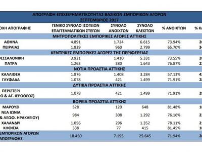 Σύμφωνα με την ΕΣΕΕ: Παρατηρείται, για το σύνολο των αγορών, οριακή αποκλιμάκωση των λουκέτων σε σχέση με το προηγούμενο εξάμηνο (-0,41%).