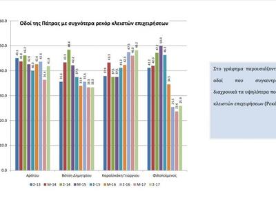 Η Αράτου, η Αγίου Ανδρέου, η Βότση, η Καραϊσκάκη και η Φιλοποίμενος είναι οι δρόμοι που διαχρονικά έχουν τα υψηλοτέρα ποσοστά κλειστών επιχειρήσεων.
