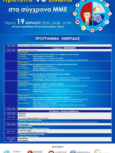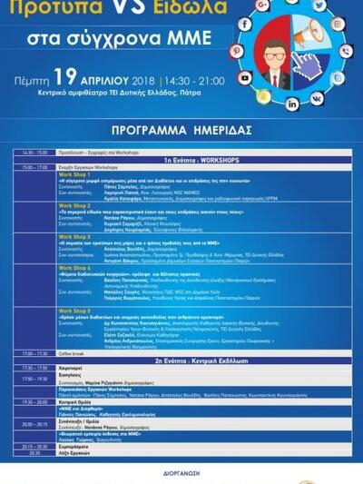 Η ημερίδα θα πραγματοποιηθεί την Πέμπτη 19 Απριλίου 2018 και ώρα 14:30 -21:00, στο Κεντρικό Αμφιθέατρο του ΤΕΙ Δυτικής Ελλάδας, στην Πάτρα.