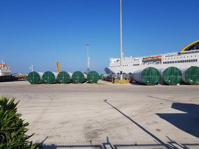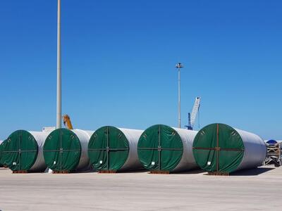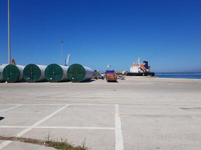 Τμήματα από ανεμογεννήτριες - σύμφωνα με πληροφορίες - βρίσκονται από την προηγούμενη εβδομάδα στο εσωτερικό του παλιού λιμανιού στο ύψος της οδού Νόρμαν. Κανείς μπορεί να διακρίνει τα κυλινδρικά τμηματα που συνθέτουν τον βασικό ύργο της ανεμογεννήτριας, αλλά ακόμη και τους τεράστιους έλικες.