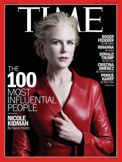 Το ετήσιο αφιέρωμα του έγκυρου ειδησεογραφικού περιοδικού Time με τους πιο επιδραστικούς ανθρώπους της χρονιάς έχει πάντα ιδιαίτερο ενδιαφέρον. Το σπέσιαλ αυτό τεύχος του περιοδικού κυκλοφόρησε και η Αυστραλή σούπερ σταρ Νικόλ Κίντμαν συγκαταλέγεται στα 100 πρόσωπα με την μεγαλύτερη επιρροή, για το 2018.