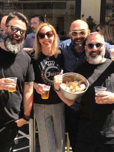 Ραντεβού στο Κελλάρι 151 της Μαιζώνος έδωσαν για δεύτερη συνεχόμενη χρονιά με αφορμή την ονομαστική τους γιορτή οι Γιώργος Κυριακόπουλος, Γιώργος Στασινόπουλος, Γιώργος Στυλιανός (George Berman), ενώ φέτος μαζί τους γιόρτασε και η Γεωργία Παπαδοπούλου.