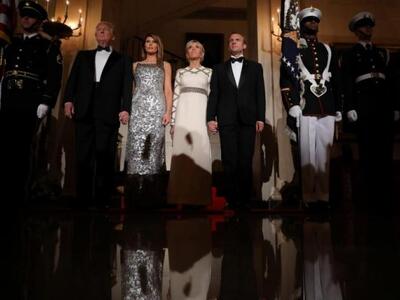 Από την πλευρά του, ο Γάλλος πρόεδρος προτίμησε να… αποφύγει τις κακοτοπιές. Και μίλησε στα γαλλικά κατά τη διάρκεια της αντιφώνησής του. Ο πρόεδρος της Γαλλίας ευχαρίστησε τον Αμερικανό ομόλογό του για την τιμή να είναι ο πρώτος ηγέτης για τον οποίο διοργανώθηκε επίσημο δείπνο στον Λευκό Οίκο. Και μίλησε για την αδιάρρηκτη φιλία ανάμεσα στις ΗΠΑ και τη Γαλλία.