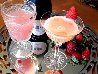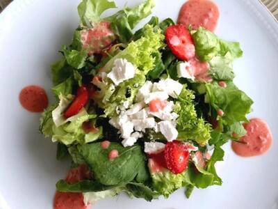 Σας παρουσιάζω μία δροσερή συνταγή σαλάτας με βινεγκρέτ φράουλας και μία συνταγή για ένα home made απεριτιφ με αφρώδες κρασί.