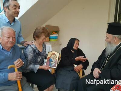 Την υπεραιωνόβια γιαγιά στη Ναύπακτο επισκέφθηκε ο Μητροπολίτης Ιερόθεος