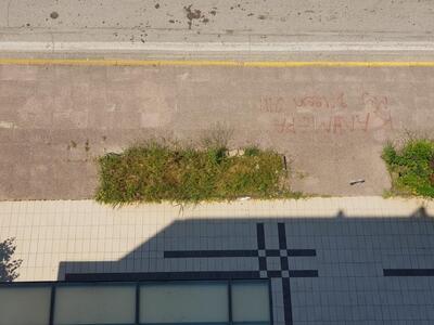 "Καλημέρα έρωτά μου" και επίσης "Καλημέρα my queen!!!" έχει γράψει κάποιος στο πεζοδρόμιο στο οποίο βλέπει εύκολα κανείς από το μπαλκόνι των γραφείων της περιφέρειας Δυτικής Ελλάδας.