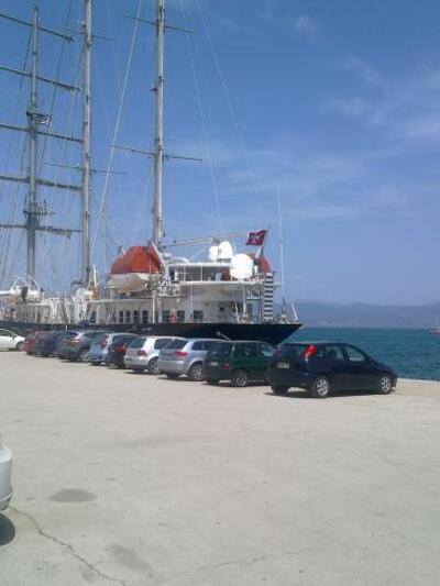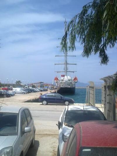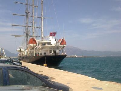 Ένα εντυπωσιακό τρικάταρτο σκάφος έχει καταπλεύσει στο παλιό λιμάνι της Πάτρας στο μόλο Αγίου Νικολάου προξενώντας εντύπωση στους περαστικούς.