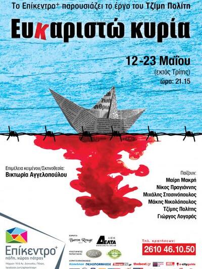 Το Επίκεντρο+ παρουσιάζει το έργο του Τζίμη Πολίτη «Ευκαριστώ κυρία» σε σκηνοθεσία Βικτωρίας Αγγελοπούλου, από τις 12 έως τις 23 Μαΐου (εκτός Τρίτης) στις 21.15.